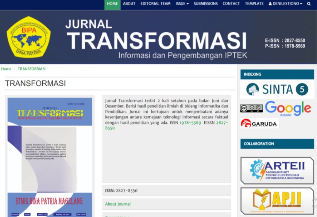 Proses akreditasi SINTA dilakukan berdasarkan beberapa indikator seperti substansi ilmiah, frekuensi publikasi, manajemen jurnal, dan kontribusi jurnal terhadap pengembangan ilmu pengetahuan. Jurnal yang terakreditasi SINTA menjadi jurnal yang memiliki kualitas lebih tinggi dalam hal jurnal ilmiah. Jurnal Transformasi BIPA telah banyak mempublikasikan jurnal khususnya dibidang informatika dan komputer ini sejalan dengan tujuan utama yaitu dapat menarik perhatian baik akademisi, peneliti maupun kalangan mahasiswa yang ingin mempublikasikan jurnalnya di Jurnal Transformasi.Merupakan pencapaian yang cukup membanggakan meskipun pengelola terus berbenah untuk meningkatkan capaian berikutnya.