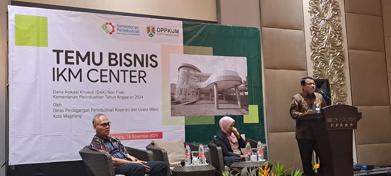 Guna meningkatkan IKM Center sebagai pusat bisnis UMKM agar semakin dikenal dan tumbuh berkembang, Pemkot Magelang melalui DPPKUM (Dinas Perindustrian, Perdagangan, Koperasi dan Usaha Mikro) Kota Magelang mengadakan acara yang dikemas dalam tema temu bisnis ikm center pada Selasa, (19/11/2024) di Hotel Puri Asri Kota Magelang.