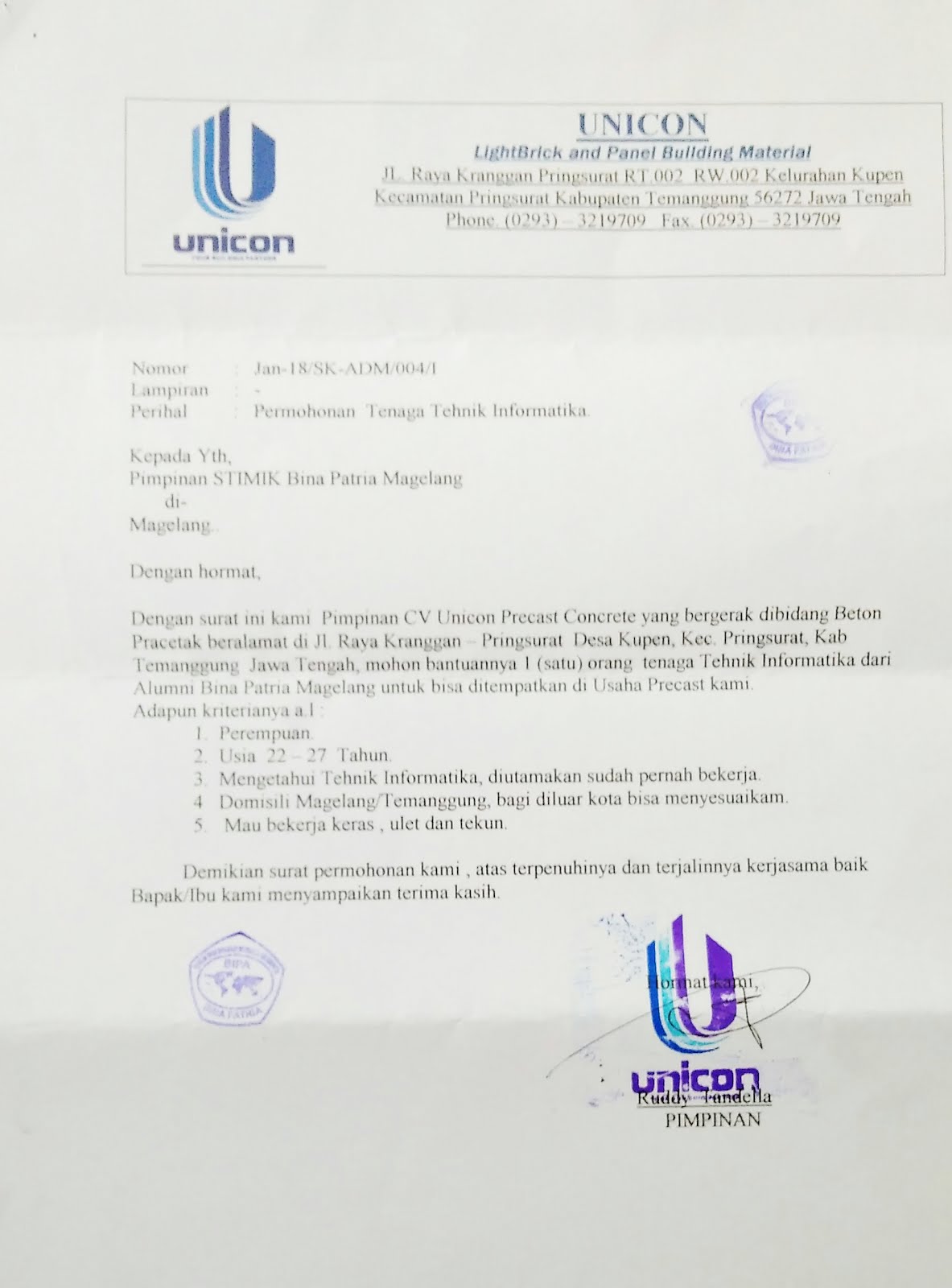 Lowongan CV Unicon Precast Concrete