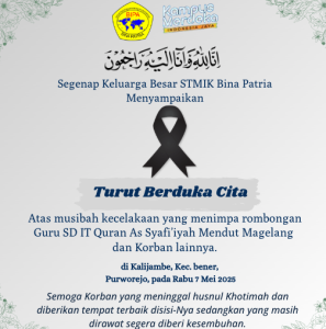 Keluarga besar STMIK Bina Patria menyampaikan turut berduka atas insiden kecelakaan yang menimpa rombongan guru SD Islam Tahfidz Qur’an As