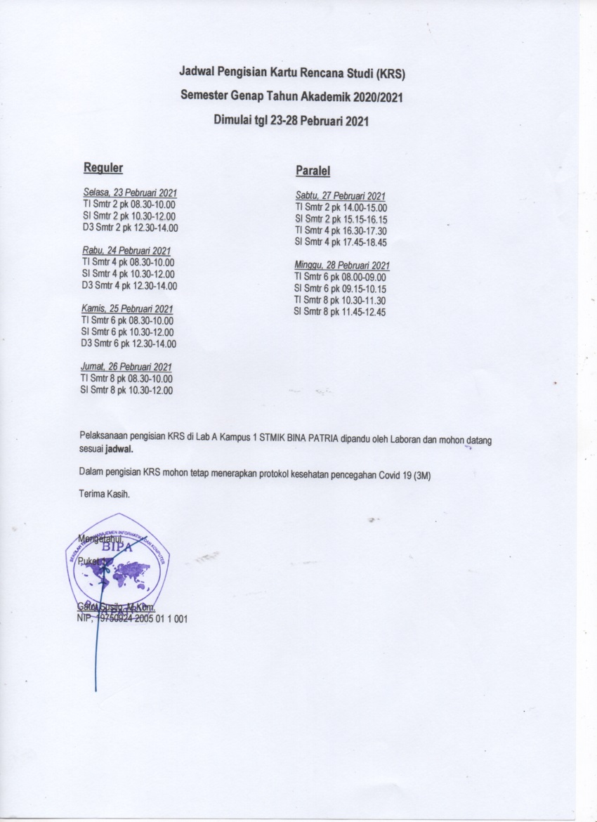 Jadwal Pengisian KRS Semester Genap Ta. 2020/2021