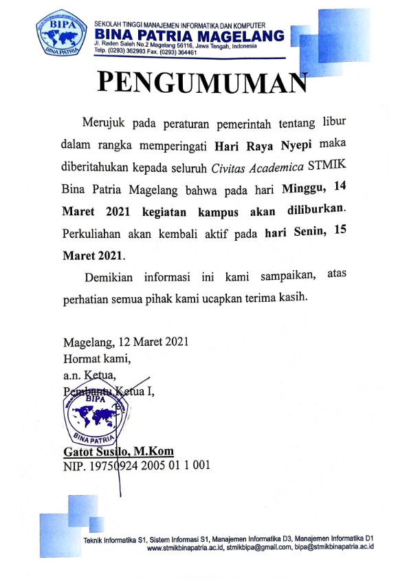 SERTIFIKAT AKREDITASI STMIK BINA PATRIA