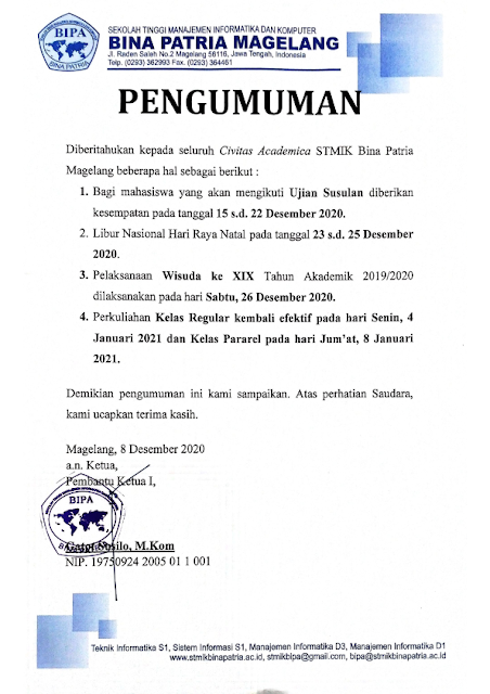 Yudisium STMIK Bina Patria Tahun Akademik 2019/2020